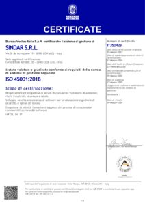 Sistema di Gestione della Sicurezza certificato ai sensi della norma ISO 45001:2018 da Bureau Veritas con il n. IT350423.